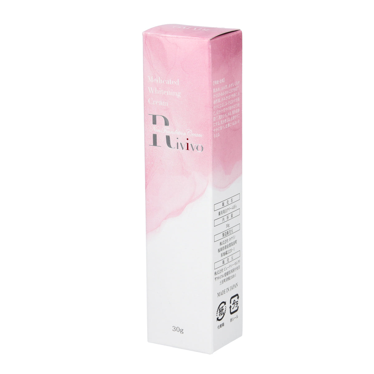 綺麗に見せるコツは額からデコルテまでまんべんなくRivivoクリームを付け、顔と首に色の段差を作らないことです。色素が入っていないので地肌を反映したワントーン明るい自然な白肌になります。 - 全体にクリームが塗られた後、ティッシュなどで目と口を拭き取ってからメイクをするとお顔が曇りません。お出かけ先でメイクが落ちたと思ったら上からクリームを塗り足せば簡単にメイク直しが出来ます。