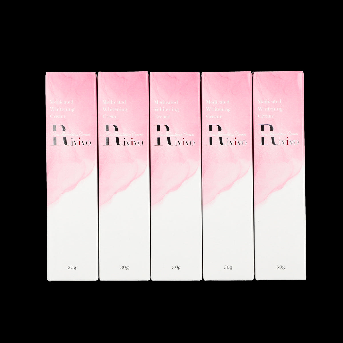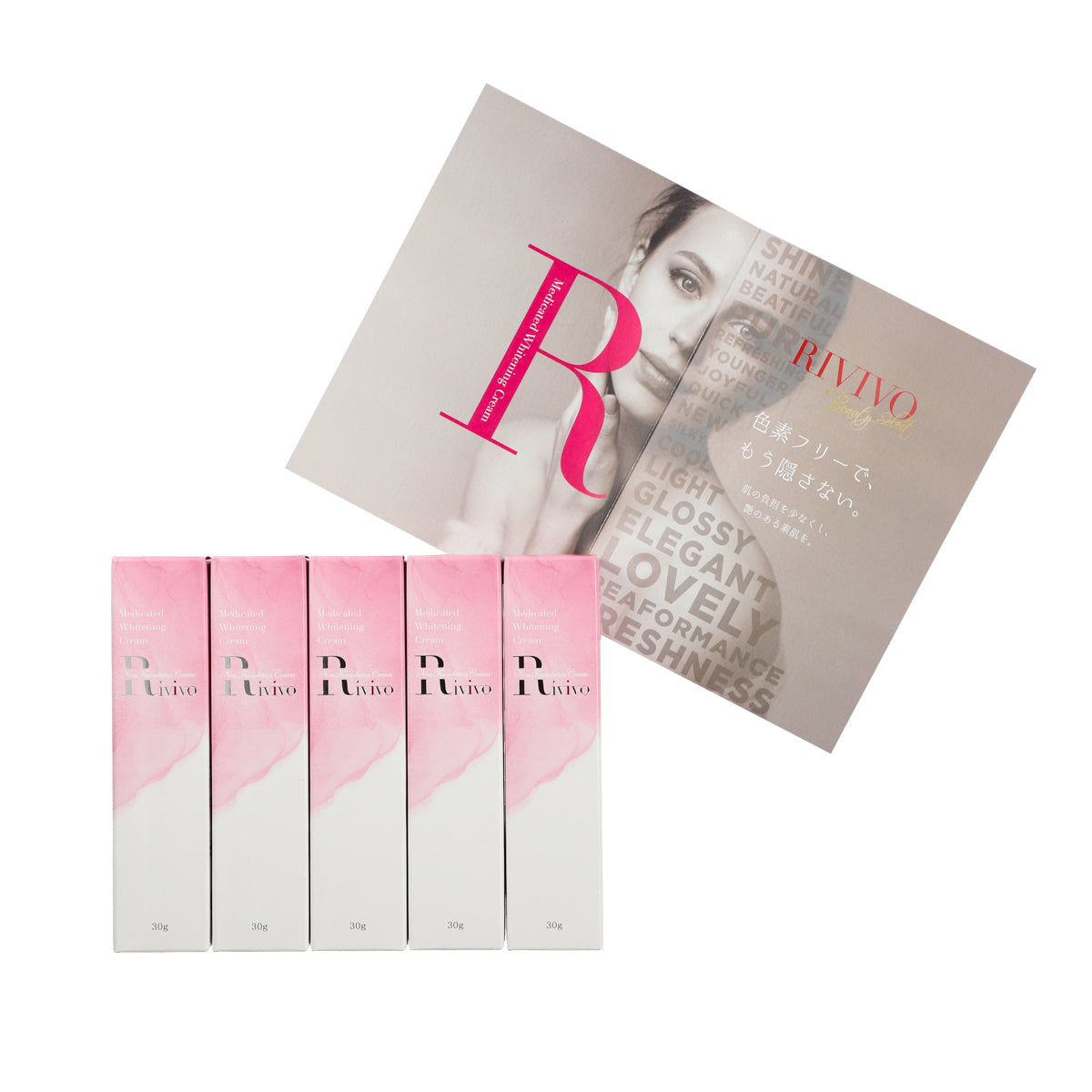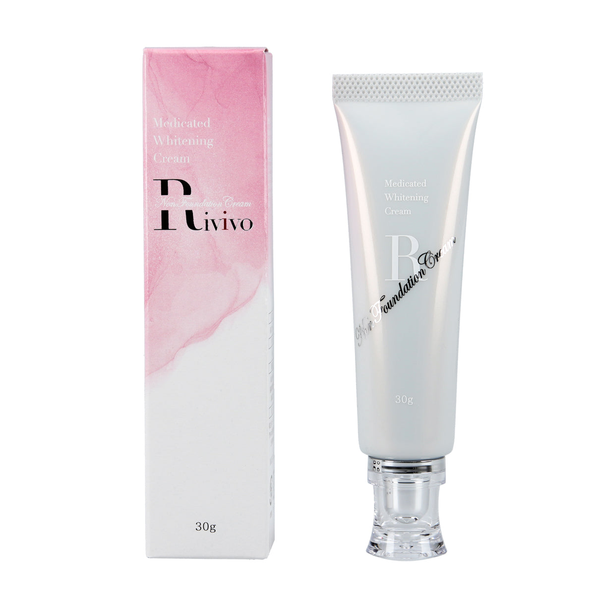 - 綺麗に見せるコツは額からデコルテまでまんべんなくRivivoクリームを付け、顔と首に色の段差を作らないことです。色素が入っていないので地肌を反映したワントーン明るい自然な白肌になります。